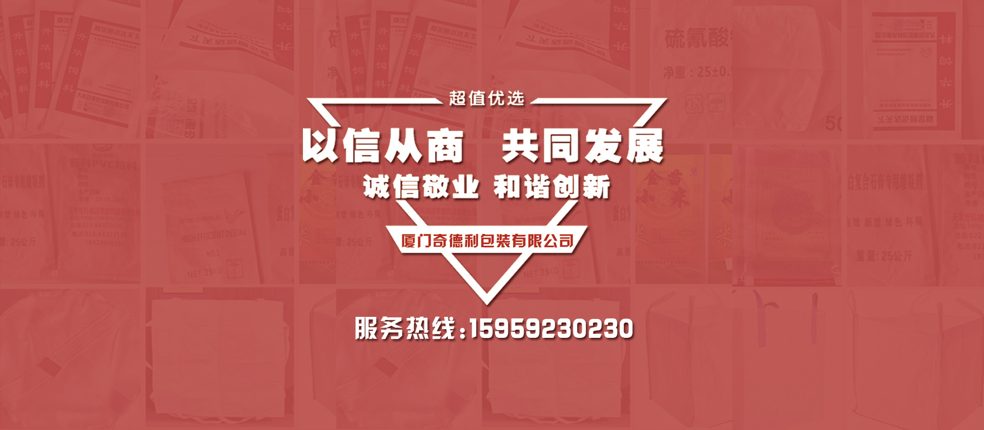 廈門奇德利包裝有限公司是專業編織袋廠家,生產各種顏色規格的編織袋、彩印膠印編織袋、紙塑復合袋(紙袋)、噸兜袋、全新或二手噸袋、 并兼營:高、低壓薄膜袋、封包機、封包線、可根據客戶要求質量、規格、顏色、生產。